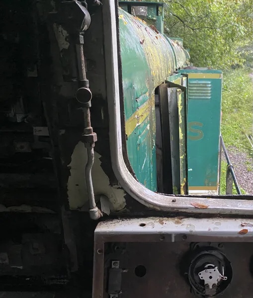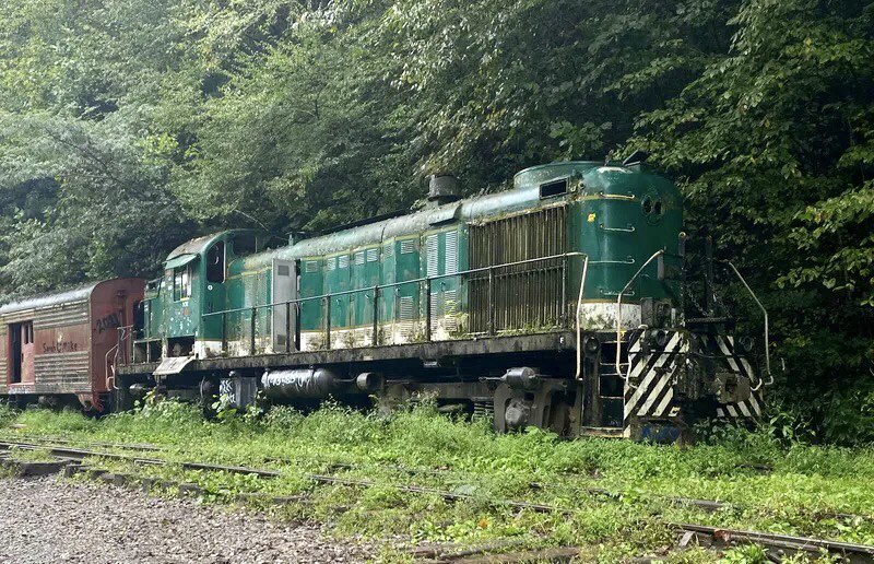 About 5 miles past the old Brushy Mountain Prison, sits the deteriorating 1951 Arco RS-3 Locomotive. This was a cool piece of history in decent condition until vandals and thieves found it.